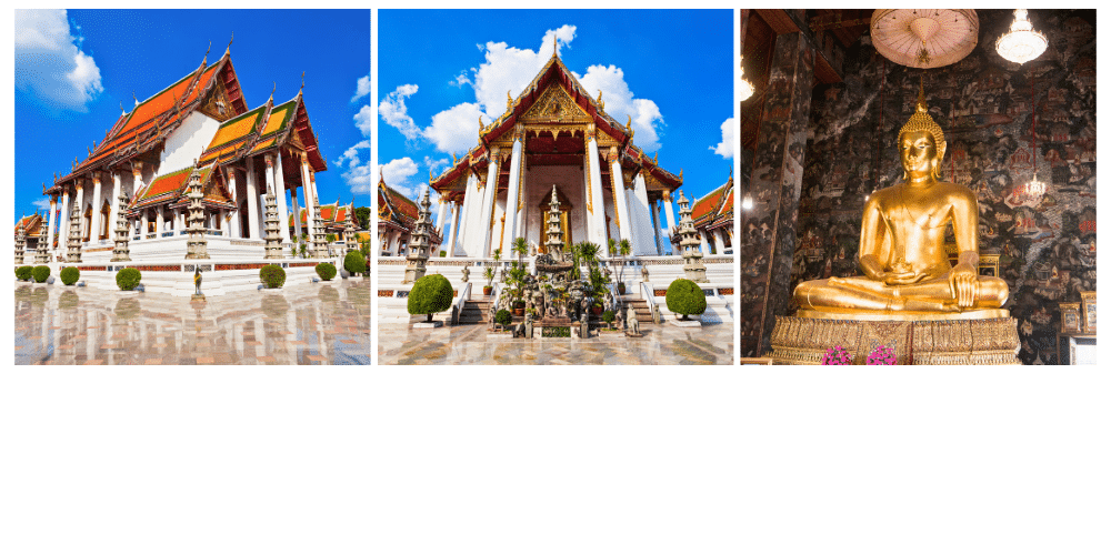 Situé au centre de Bangkok, Wat Suthat est un des temples les plus impressionnants pour ses fresques murales détaillées et ses sculptures complexes. Ce temple abrite une immense statue de Bouddha en bronze, qui aurait été transportée depuis Sukhothaï au XIVe siècle.