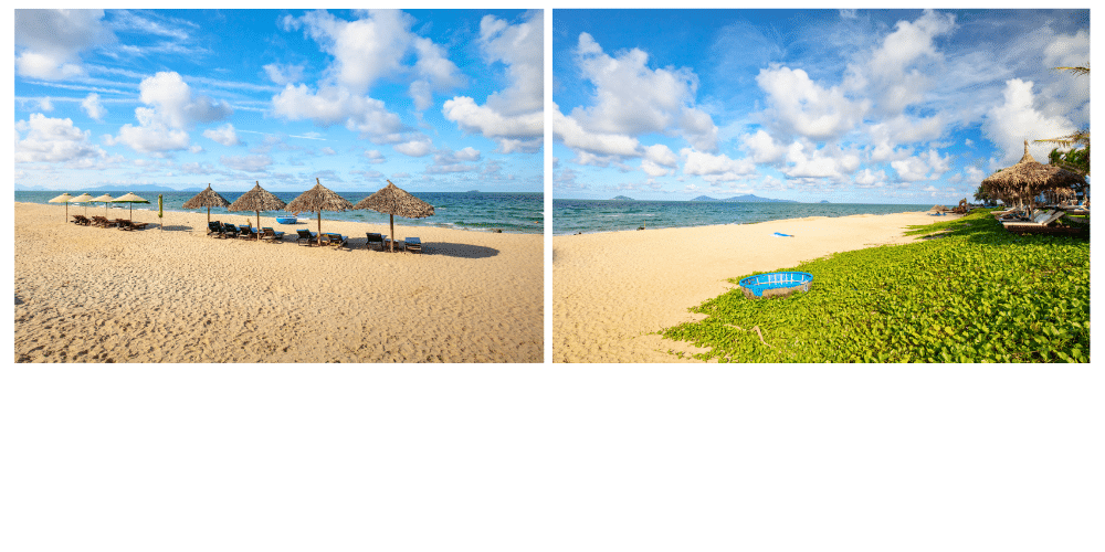 Située à seulement 5 kilomètres de la vieille ville de Hội An, la plage de Cua Dai est une étendue de sable doré qui s’étire sur plusieurs kilomètres. Malgré une érosion progressive au fil des années, cette plage conserve un charme unique, notamment grâce à sa proximité avec les îles Cham, accessibles en bateau.