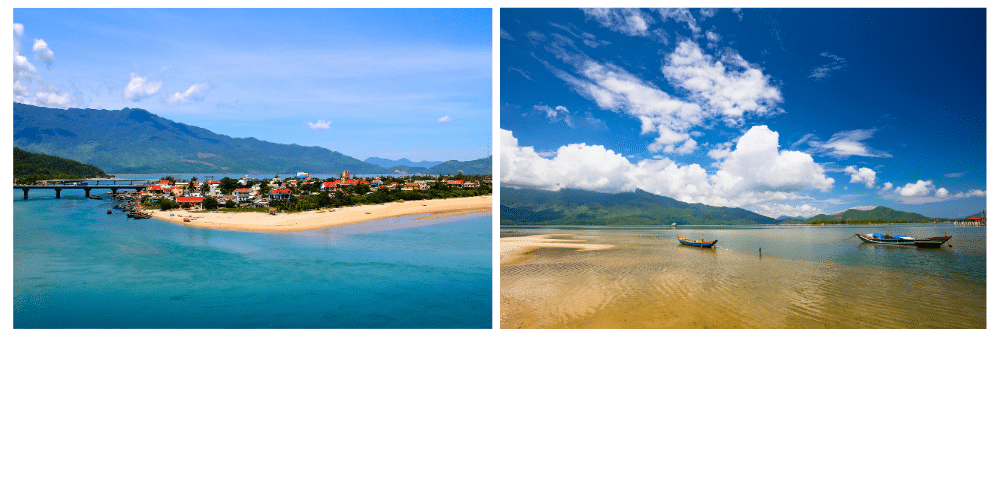 Située à mi-chemin entre Đà Nẵng et Huế, la plage de Lăng Cô est un véritable joyau niché entre les montagnes verdoyantes et la mer d’un bleu éclatant. Cette longue bande de sable doré s’étend sur près de 10 kilomètres et offre un cadre paisible, parfait pour ceux qui cherchent à s’éloigner des foules.
