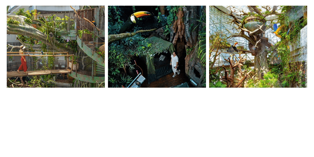 En plein cœur de Citywalk, ce bâtiment cylindrique aux parois de verre abrite une biosphère tropicale unique au Moyen-Orient. À l’intérieur, une forêt verticale se déploie autour d’un arbre artificiel monumental, sur quatre niveaux de canopée. On y croise des paresseux, des toucanets, des mygales, des chauves-souris et plus de 3 000 espèces végétales et animales.