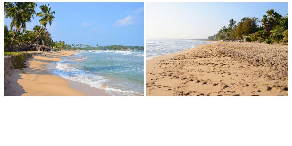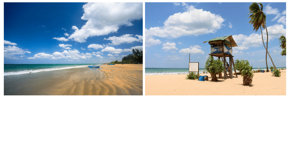 La plage de Bentota est l’une des destinations balnéaires les plus populaires du pays, située à environ 65 kilomètres au sud de Colombo. Elle est très appréciée pour son sable fin, son ambiance détendue et ses eaux cristallines.