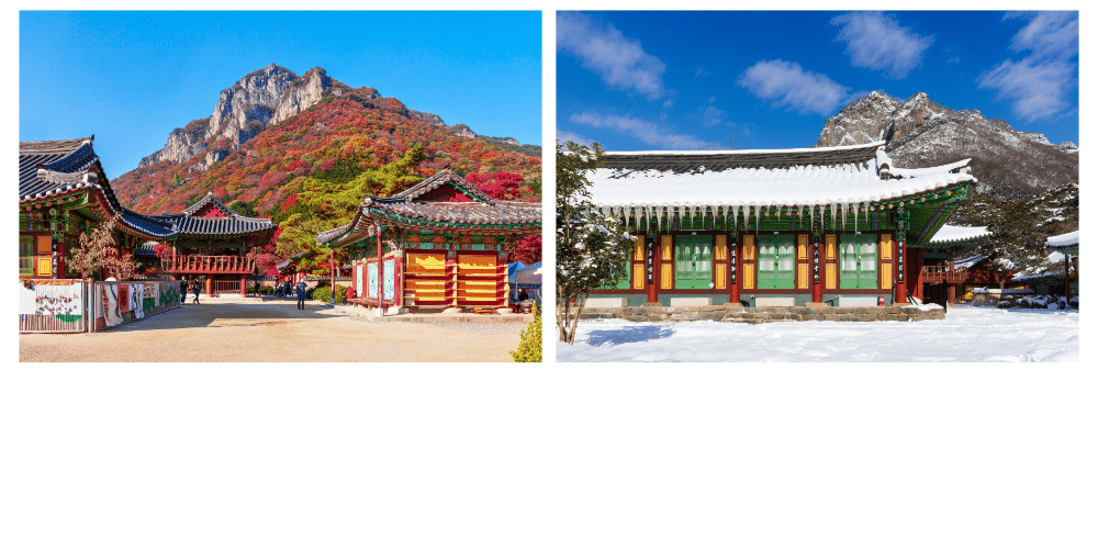 L’architecture du temple reflète la simplicité et l’élégance du style coréen traditionnel, avec des pavillons en bois subtilement ornés et entourés de forêts verdoyantes. Songgwangsa est particulièrement réputé pour son atmosphère calme et introspective, loin de l’agitation urbaine. Le Pavillon Daeungjeon, qui abrite une statue de Bouddha, est un lieu de méditation et de rituels quotidiens, où les moines et les visiteurs peuvent participer aux cérémonies bouddhistes.Ce temple est un lieu de retraite spirituelle pour ceux qui souhaitent s’immerger dans la méditation et la vie monastique. Avec ses randonnées accessibles dans les montagnes environnantes, Songgwangsa offre une expérience spirituelle profonde, enrichie par le cadre naturel qui l’entoure.