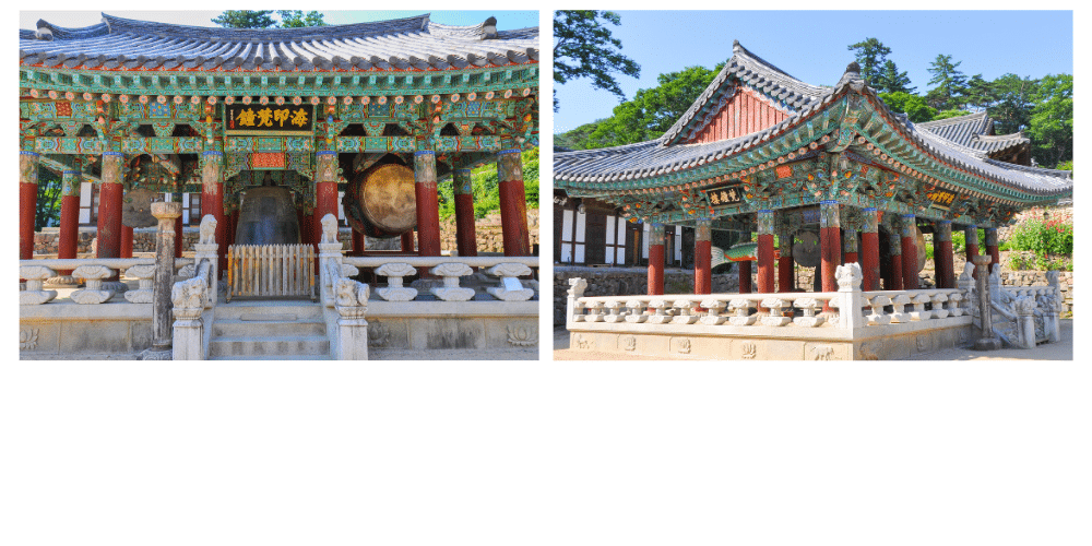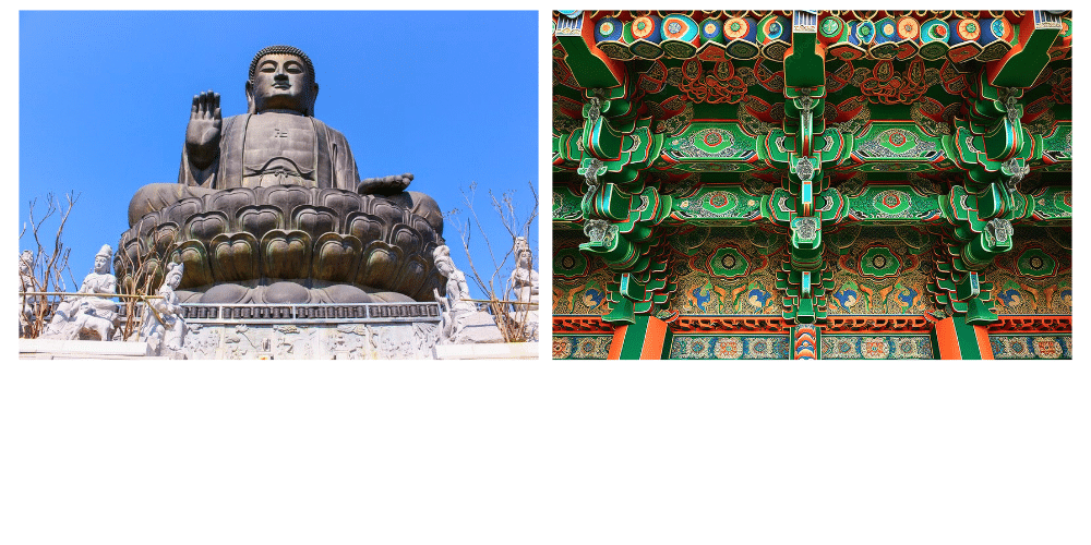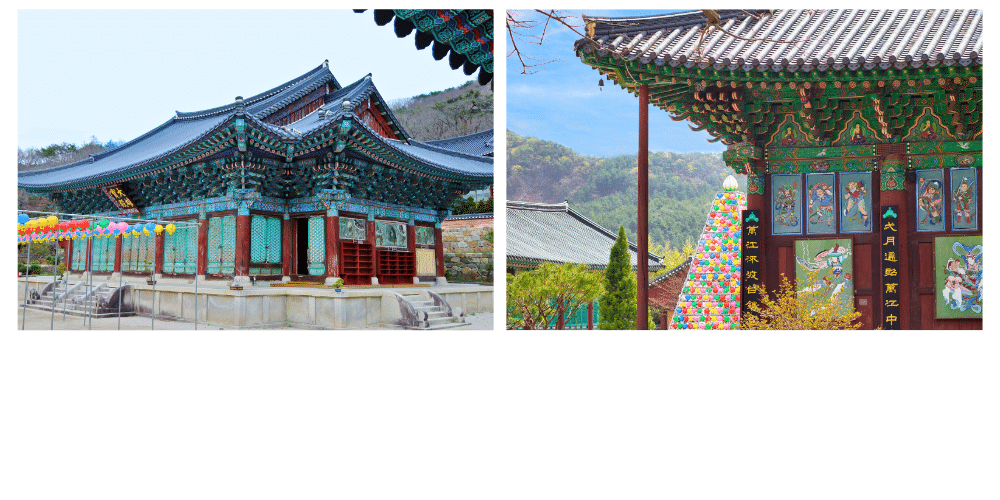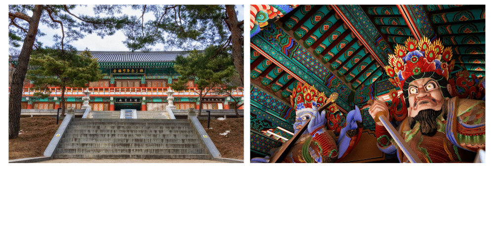 Le Daeungjeon, le pavillon principal, abrite une statue de Bouddha Sakyamuni, et est un exemple magnifique de l’architecture bouddhiste traditionnelle. Ce temple est également connu pour ses peintures murales en bois, qui illustrent des scènes de la vie du Bouddha et des enseignements bouddhistes.