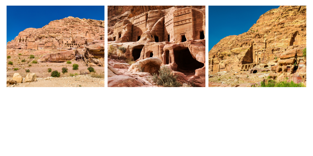 Dominant l’horizon oriental de la cité, les Tombeaux Royaux forment un ensemble spectaculaire de monuments funéraires taillés à même la roche. Parmi eux : la Tombe de l’Urne, la Tombe de la Soie, la Tombe Corinthienne ou encore celle du Palais. Ces façades géantes mêlent influences hellénistiques, romaines et nabatéennes, dans un foisonnement de détails sculptés. Leur fonction précise reste débattue : certains étaient probablement des mausolées princiers, d’autres de hauts lieux de mémoire ou de culte posthume. L’ensemble offre un point de vue magnifique sur la vallée et sur l’ingéniosité des bâtisseurs nabatéens.
