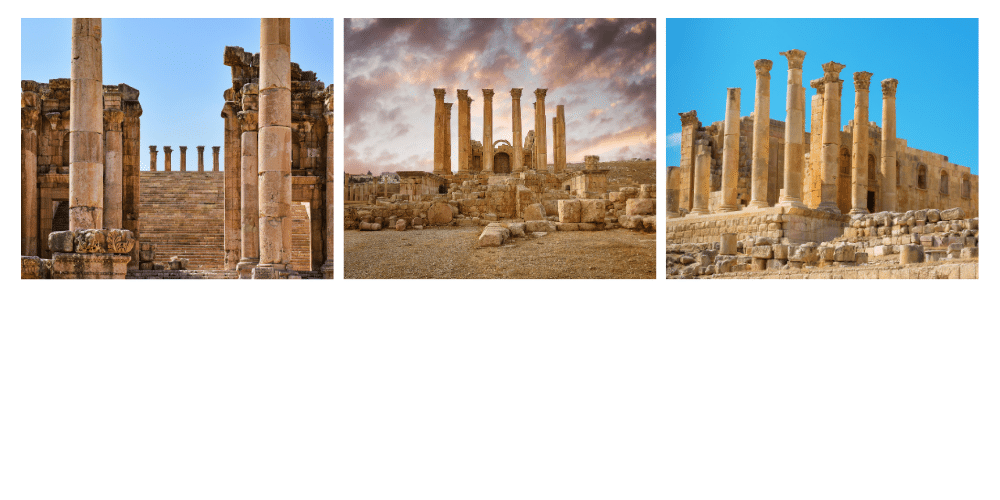 - Jerash, ancienne cité de la Décapole, dévoile des temples gréco-romains superbement conservés.