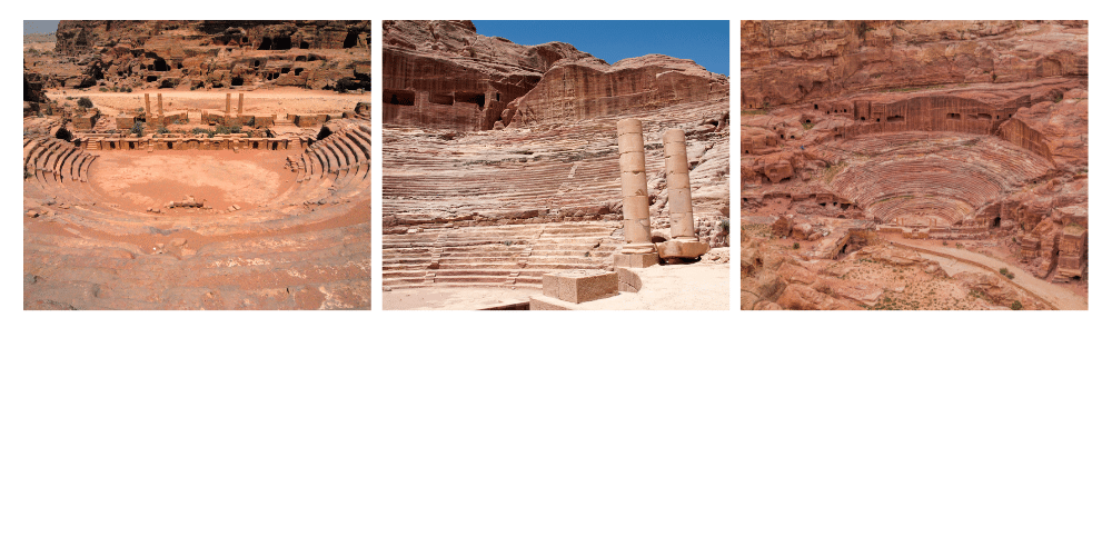 Creusé directement dans la paroi rocheuse à l’entrée de la vallée centrale, le théâtre de Pétra est un chef-d’œuvre de transition culturelle. Construit au Ier siècle sous le règne du roi Aretas IV, il fut ensuite agrandi selon les standards romains après l’annexion de la région en 106 ap. J.-C. Capable d’accueillir plus de 6000 spectateurs, il servait probablement à des cérémonies officielles, des discours publics, et peut-être à des représentations dramatiques. Sa position stratégique offre un panorama saisissant sur les Tombeaux Royaux, comme si l’architecture elle-même mettait en scène le pouvoir et la mémoire.