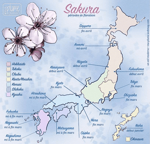 Les dates de floraison “sakura zensen” sont basées sur des prévisions et elles dépendent totalement des conditions climatiques et de la météo, aussi chaque saison est différente et la floraison dure plus ou moins longtemps selon les températures ressenties.