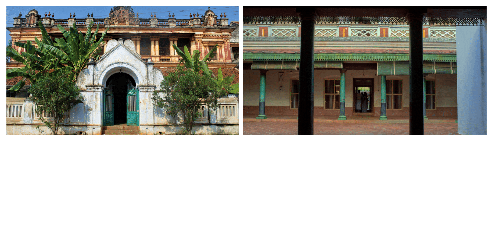 Ces demeures gigantesques, aujourd’hui désertées, mêlent architecture tamoule, influences européennes et matériaux de luxe importés : marbres italiens, lustres belges, bois de Birmanie…