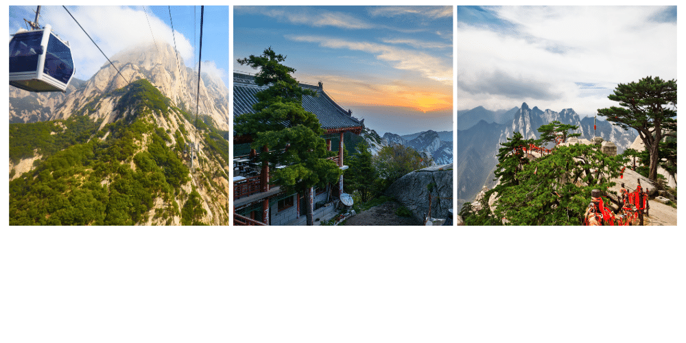 Depuis le village au pied du Mont Hua, il faut compter environ 8h pour se balader entre tous les pics et environ 4h si vous partez directement du pic Nord, avec la télécabine. Hua est réputé pour posséder des sentiers très vertigineux, avec des marches parfois creusées dans la roche et une balade qui s’apparente plutôt à de l’escalade, même si tous les sentiers sont aménagés. Toutefois, les paysages au sommet vous éblouiront et vous laisseront sans voix…