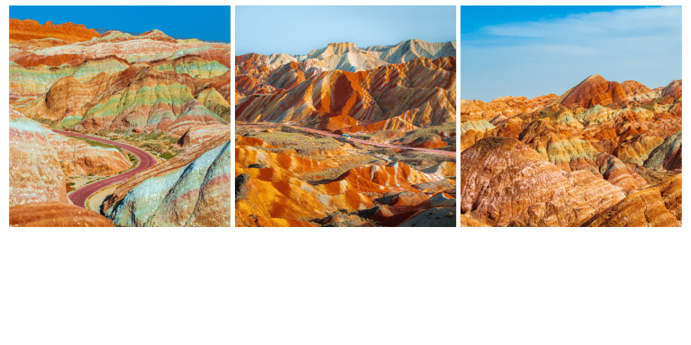 Zhangye Danxia est une zone géologique située dans la région de Gansu, au nord-ouest de la Chine et est célèbre pour ses formations rocheuses colorées que l’on appelle “les montagnes arc en ciel”.