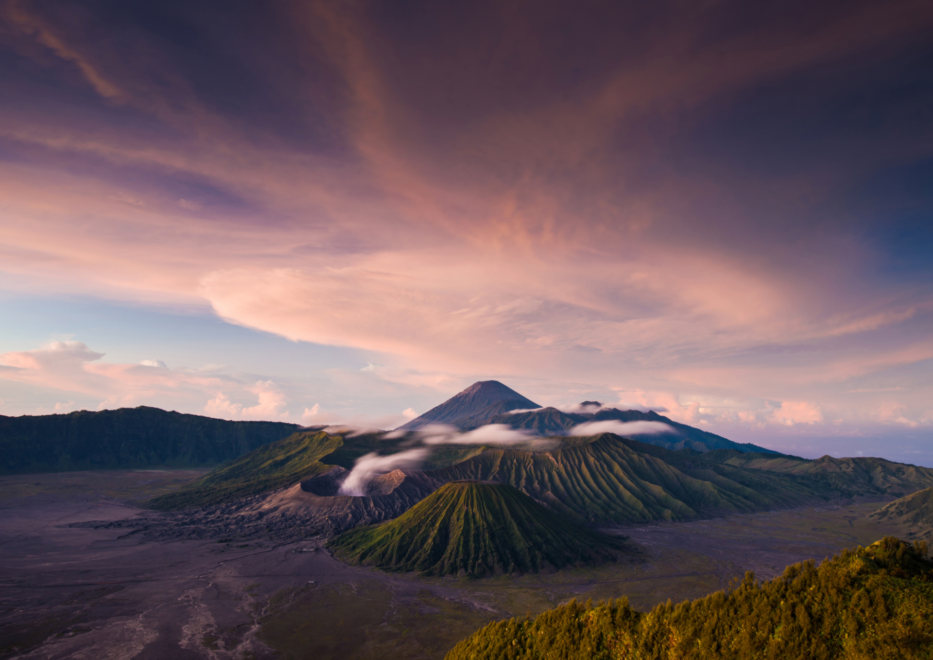 - Lever de soleil spectaculaire sur le volcan Bromo, l’un des paysages volcaniques les plus impressionnants d’Indonésie.