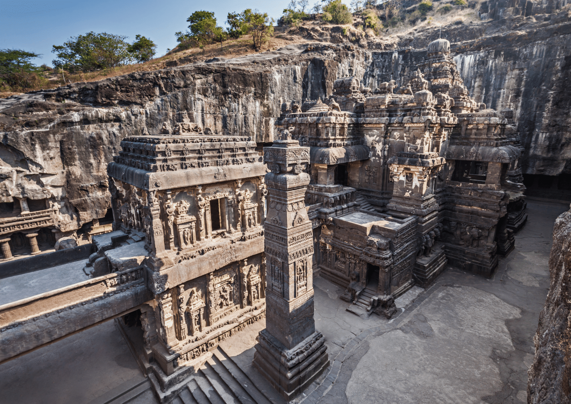 - Les grottes d’Ellora, ensemble monumental taillé dans la falaise, représentatif de l’harmonie des traditions hindouistes, bouddhistes et jaïns.