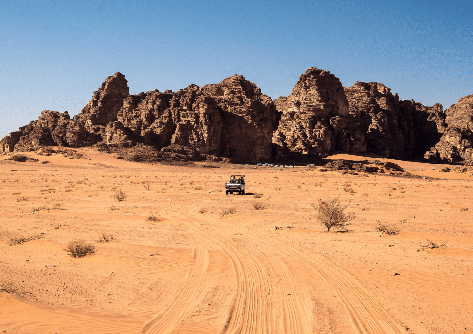 - L’excursion en jeep 4×4 au cœur du désert du Wadi Rum (environ 2h00)