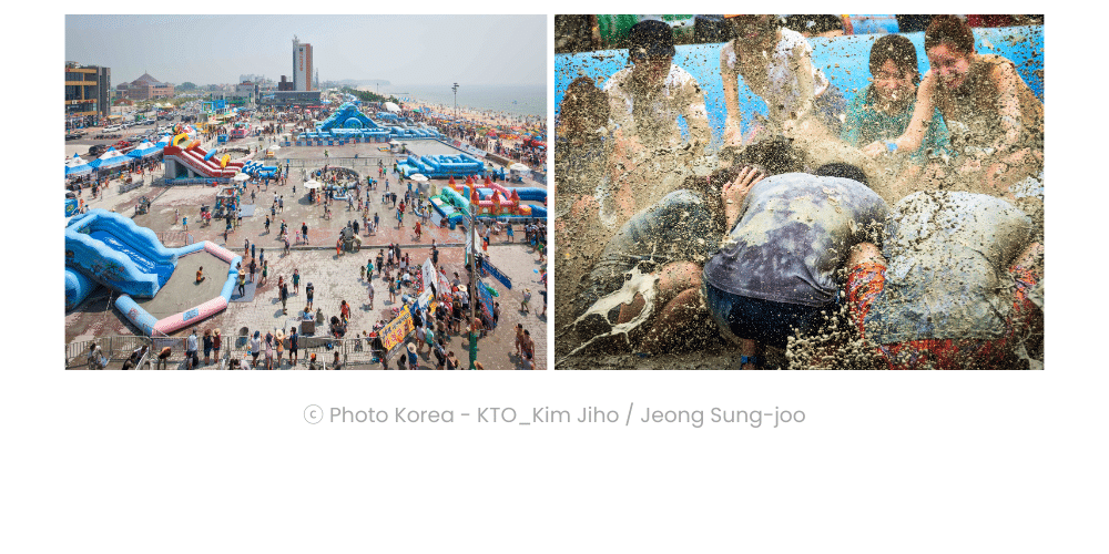 Le festival de la boue fait partie de l’un des plus célèbres évènements de la Corée du Sud et a généralement lieu fin juillet / début août sur la plage de Daecheon à Boryeong. De nombreux visiteurs s’y rendent pour s’amuser dans des piscines de boue, s’amuser et passer du bon temps, en plus de profiter des bénéfices de la boue pour la peau.