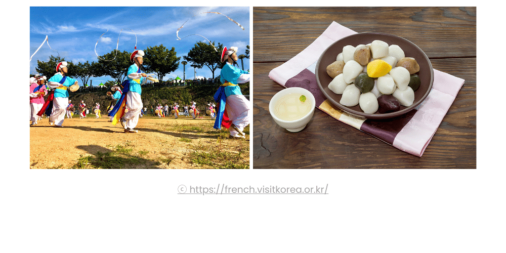 La fête locale de Chuseok célèbre la générosité des récoltes et de la terre : les Coréens profitent de cet évènement en famille, s’habillent de manière traditionnelle et dégustent des plats ancestraux, préparés rigoureusement.