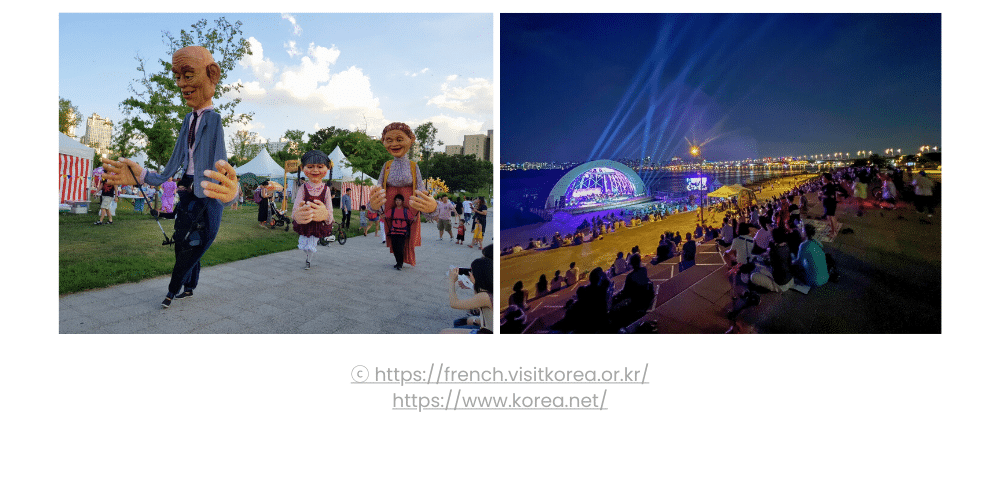 Le festival d’été Hangang de Séoul est l’un des évènements incontournables de la ville depuis 2013. Il se déroule durant les mois de juillet et août et propose de nombreuses activités et animations à découvrir au cœur de 11 parcs de Hangang.