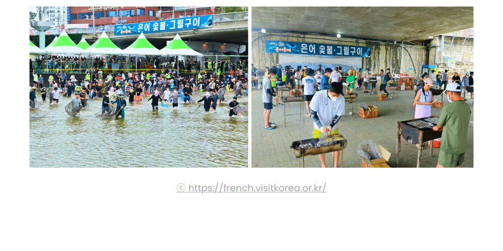 Le festival Euneo à Bongwha se déroule durant l’été et met à l’honneur le poisson d’eau douce ! Les visiteurs pourront participer à une séance de pêche dans la rivière Naesongcheon avec des épuisettes ou pour les plus courageux, dans des piscines à mains nues.