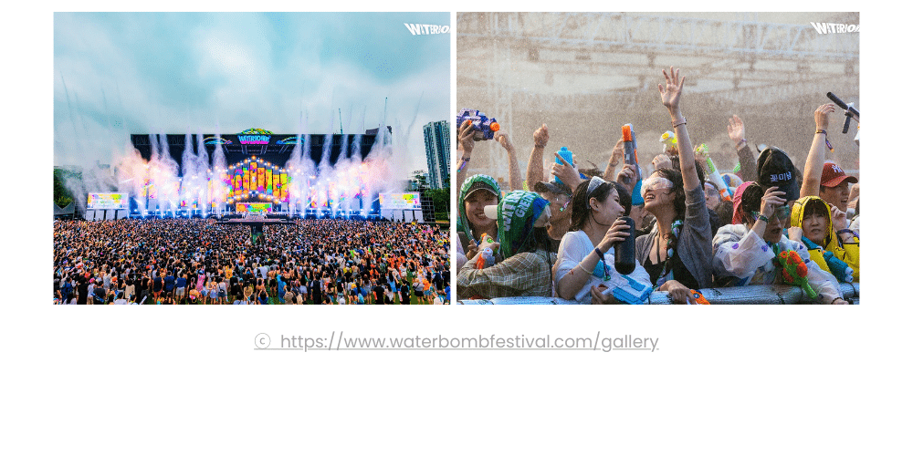 Le waterbomb festival est un évènement musical très apprécié en Corée du Sud pendant l’été. Il se déroule en plein air et propose des concerts de hip-hop, k-pop et de DJ.