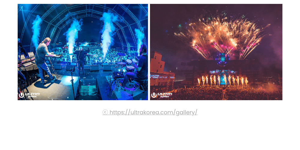 L’Ultra Korea, qui a généralement lieu en juin, est un festival de musique électronique qui attire de nombreux visiteurs. Il s’agit d’un des plus grands festivals de ce style en Asie, où plusieurs DJ du monde entier viennent se produire sur scène.