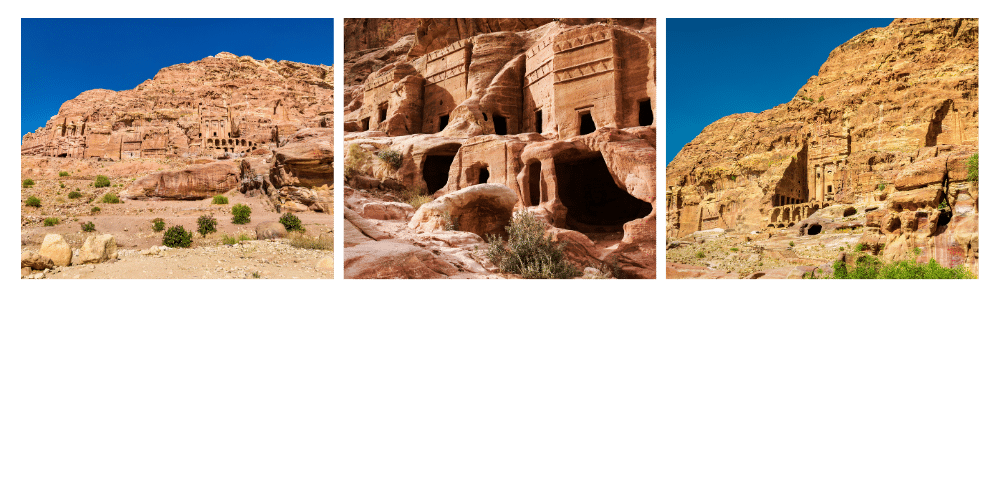 Dominant l’horizon oriental de la cité, les Tombeaux Royaux forment un ensemble spectaculaire de monuments funéraires taillés à même la roche. Parmi eux : la Tombe de l’Urne, la Tombe de la Soie, la Tombe Corinthienne ou encore celle du Palais. Ces façades géantes mêlent influences hellénistiques, romaines et nabatéennes, dans un foisonnement de détails sculptés. Leur fonction précise reste débattue : certains étaient probablement des mausolées princiers, d’autres de hauts lieux de mémoire ou de culte posthume. L’ensemble offre un point de vue magnifique sur la vallée et sur l’ingéniosité des bâtisseurs nabatéens.