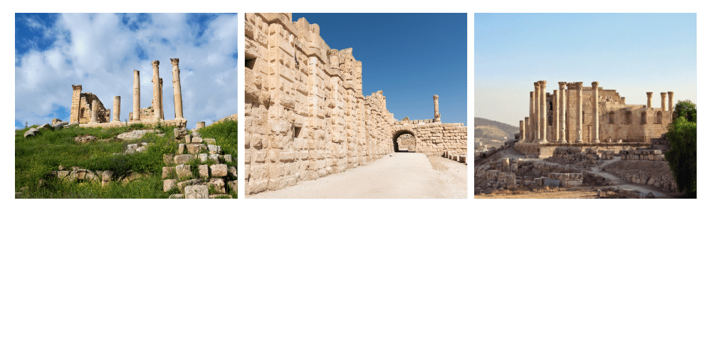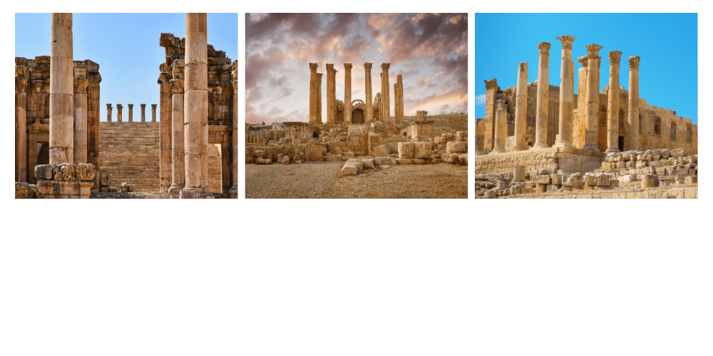- Jerash, ancienne cité de la Décapole, dévoile des temples gréco-romains superbement conservés.