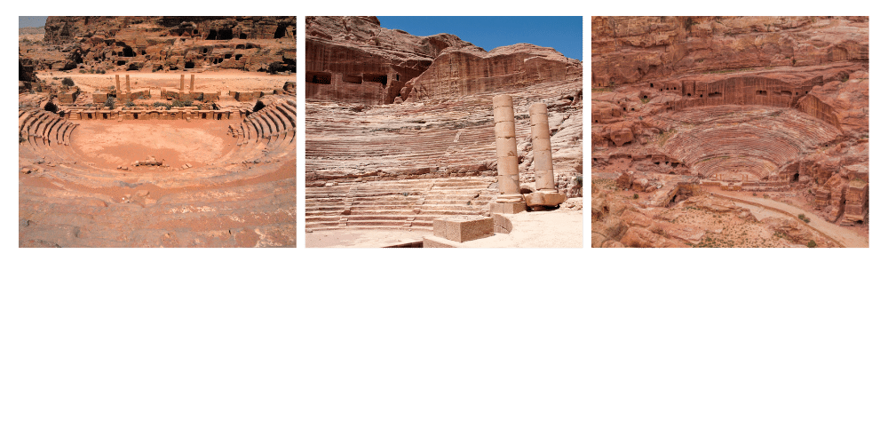 Creusé directement dans la paroi rocheuse à l’entrée de la vallée centrale, le théâtre de Pétra est un chef-d’œuvre de transition culturelle. Construit au Ier siècle sous le règne du roi Aretas IV, il fut ensuite agrandi selon les standards romains après l’annexion de la région en 106 ap. J.-C. Capable d’accueillir plus de 6000 spectateurs, il servait probablement à des cérémonies officielles, des discours publics, et peut-être à des représentations dramatiques. Sa position stratégique offre un panorama saisissant sur les Tombeaux Royaux, comme si l’architecture elle-même mettait en scène le pouvoir et la mémoire.