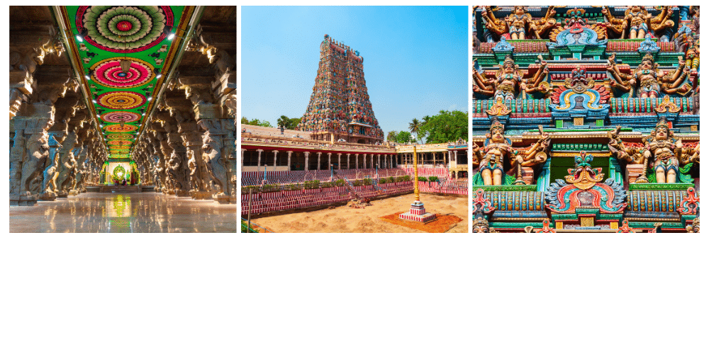 Construit au cours de plusieurs siècles par différentes dynasties (Chola, Pandya, et Vijayanagara), ce temple est un parfait exemple de l’architecture dravidienne. Les corridors sont bordés de sculptures complexes, illustrant des scènes de la mythologie hindoue et des épisodes de la vie de Vishnu. Un point fort de la visite est le hall des mille piliers, où chaque pilier est sculpté avec une attention minutieuse aux détails.