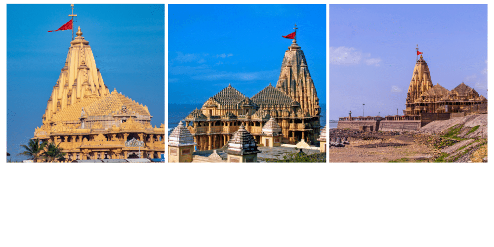 Le Temple de Somnath, situé sur la côte ouest du Gujarat, est l’un des Douze Jyotirlingas (sanctuaires les plus sacrés dédiés à Shiva). Il a une histoire marquée par la destruction et la reconstruction. Ce temple, dont la première version daterait d’environ 2000 ans, fut détruit et reconstruit pas moins de six fois au cours des siècles, la plus récente reconstruction datant de 1951 sous l’égide de Sardar Vallabhbhai Patel.