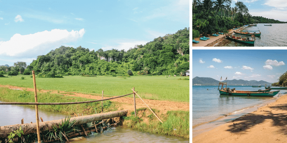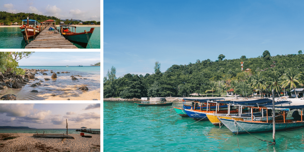 Le golfe de Thaïlande abrite plusieurs îles rattachées au Cambodge : Koh Rong est réputée pour ses plages idylliques, ses animations et ses eaux cristallines.