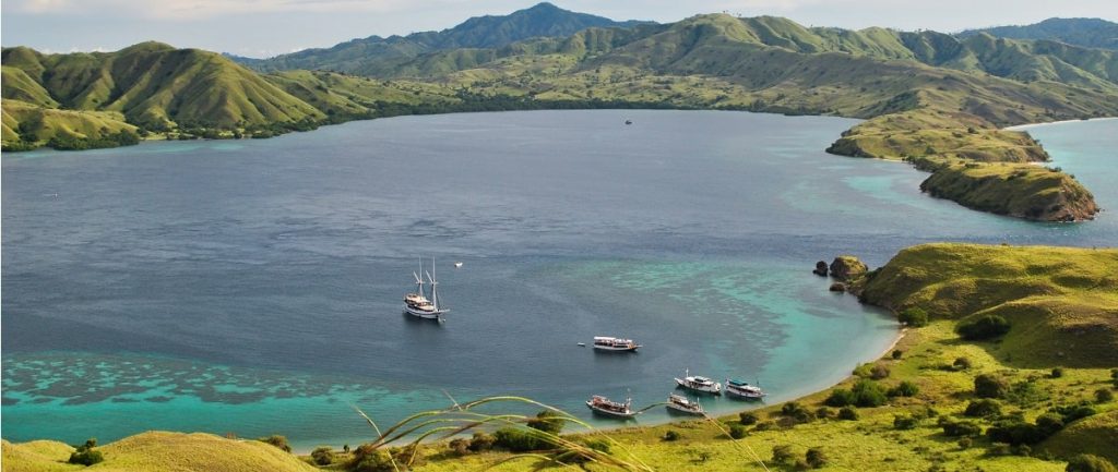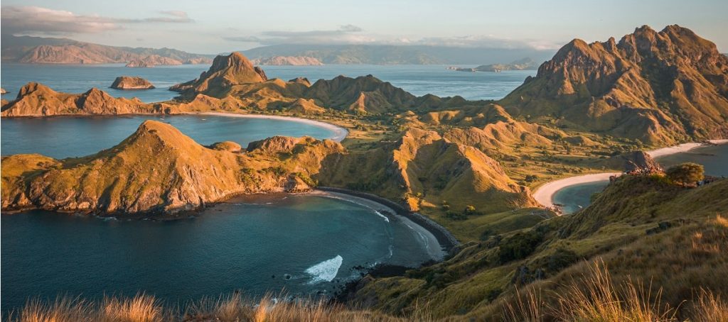 L‘île de Padar est la troisième plus grande des îles qui composent le légendaire parc national de Komodo. Elle possède également non pas une, mais trois couleurs de plages de sable – blanc, noir et rose ! En seulement 30 minutes de marche, vous pouvez atteindre le sommet de l’île et admirer des vues panoramiques époustouflantes sur le parc national. Un incontournable de votre voyage en bateau à Komodo !