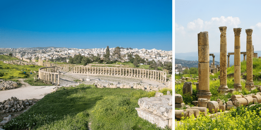 Au Nord d’Amman, Jerash est l’une des cités gréco-romaines la mieux conservée du Moyen-Orient. Ses vestiges sont incroyablement bien préservés puisqu’ils ont longtemps été ensevelis sous le sable et ont ainsi gardé leur apparence d’origine. Des archéologues ont redécouvert ces merveilles dans les années 20 avec notamment l’arc d’Hadrien, le temple de Zeus, la place ovale et son hippodrome ainsi que son immense théâtre.