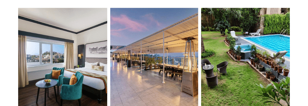 - L’hôtel Rajdarshan : avec une vue plongeante sur le lac, la ville d’Udaipur et les monts Aravallis, sa situation géographique est idéale. Un petit havre de paix à proximité de la ville sans son effervescence. Une piscine et un spa pour se détendre après une belle journée de découverte. A partir de 120 € la nuit.