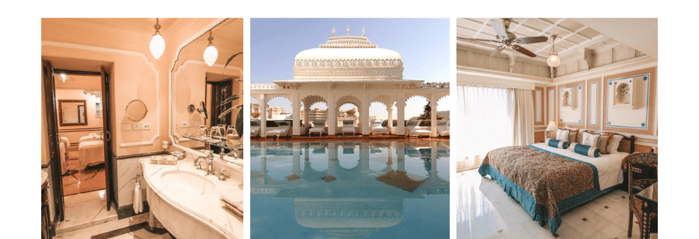 - Le Taj Lake palace : avec un budget plus conséquent mais pour une expérience inoubliable. Une décoration magnifique, une situation idéale au beau milieu du lac Pichola pour des panoramas incroyables et la possibilité de découvrir cet établissement uniquement en y séjournant. A partir de 600 € la nuit.