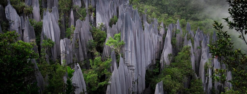 Le Parc national du Gunung Mulu est dans la région de Sarawak sur l’île de Bornéo. Inscrit au Patrimoine Mondial de l’Unesco depuis 2000, ce parc héberge des paysages fascinants, des pinacles de calcaire et de multiples grottes de taille monumentale. Cette région mondialement connue par les spéléologues s’étend sur plus de 52 000 hectares !