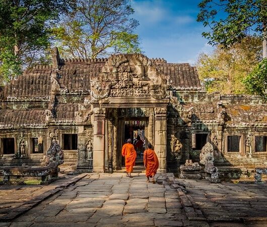 Le complexe de temples le plus remarquable de tous est Angkor Wat, dont on dit qu’il est le plus grand monument religieux du monde et qui date du début du XIIe siècle.