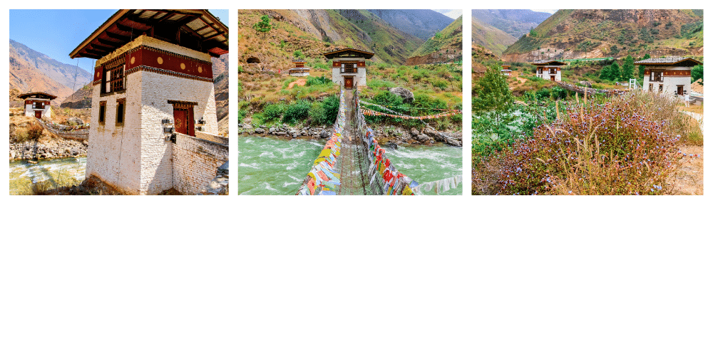 Juste après la descente de l’aéroport de Paro, un œil attentif remarquera un pont suspendu en chaînes de fer surplombant une gorge spectaculaire : c’est ici que se trouve Ta-Chogang Lhakhang, fondé par Thangtong Gyalpo, le même ingénieur-moine visionnaire à l’origine de Dungtse Lhakhang.