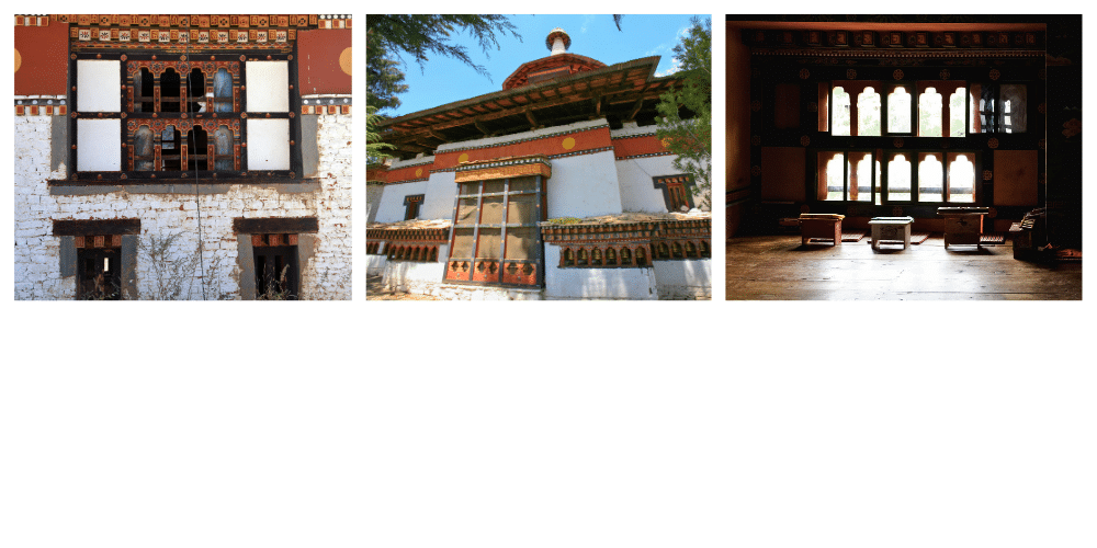 Son architecture, simple et harmonieuse, évoque l’âme ancienne du Bhoutan : murs blanchis à la chaux, portes basses sculptées, toits de bois sombre et jardin d’orangers sacrés qui fleurissent toute l’année. Les Bhoutanais y viennent encore aujourd’hui prier pour la longévité de leurs proches ou formuler un vœu avant un départ important.