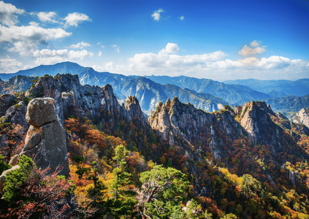 Automne : L’air devient limpide, le ciel d’un bleu profond. Les montagnes entourant Séoul (Bukhansan et Dobongsan) offrent des panoramas flamboyants, parfaits pour les amateurs de randonnée.