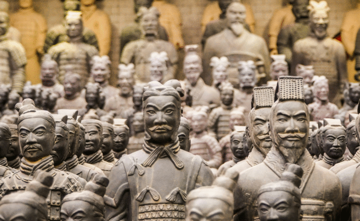 Arrivée à Xian et transfert vers votre hôtel pour le petit-déjeuner. Route vers le site de l’Armée en terre cuite. Incroyablement bien conservée, cette armée souterraine de 6 000 guerriers et chevaux de terre cuite grandeur nature, fait face à l’Est, en formation de combat. Retour à Xian. Déjeuner. Visite ensuite, de la mosquée de Xian et balade dans le quartier Musulman. Puis, vous assisterez à une démonstration de calligraphie. Visite d’une fabrique de Jade. Dîner de raviolis, spécialité de la ville. Vous assisterez pendant votre dîner à un spectacle de chants et danses des Tangs.