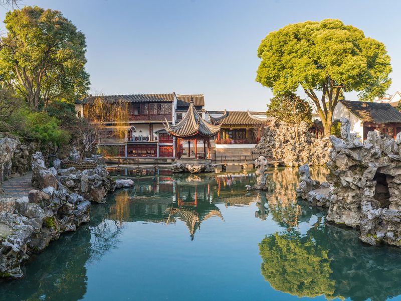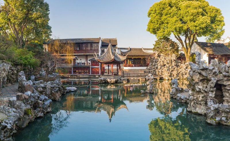 Route en direction de Suzhou, présentée comme une ville – musée ou une cité – jardin, traversée par des canaux. L’intérêt de venir à Suzhou ce sont les jardins, éparpillés aux 4 coins de la ville, qui comptent parmi les plus beaux jardins de Chine. Quatre d’entre eux sont d’ailleurs classés au patrimoine mondial de l’Unesco. Visite du jardin du maître des filets avant une balade dans la rue piétonne de Shantang au bord de la rivière. Continuation vers Tongli, entourée d’eau et parcourue par des canaux sur lesquels on dénombre 49 ponts de formes différentes. Découverte du village et visite du jardin des pensées après la retraite. Balade en bateau sur les canaux. Retour à Suzhou et installation à l’hôtel. Dîner de spécialités dim sum (bouchés vapeur).