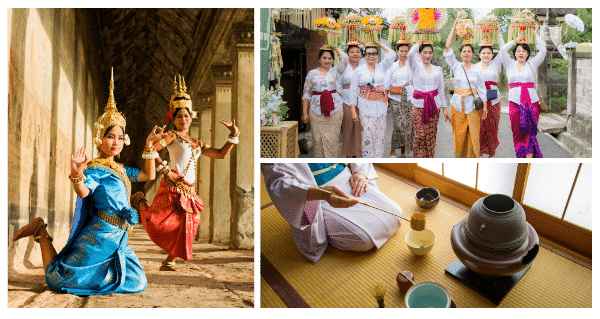 Voyager en Asie, c’est aussi découvrir des cultures profondément ancrées dans l’Histoire et les traditions. À Bali, les cérémonies colorées rythment la vie quotidienne et témoignent d’une spiritualité omniprésente. Au Cambodge, les danses apsaras traditionnelles perpétuent un héritage artistique ancestral. Au Japon, les temples invitent à la contemplation, tandis que la cérémonie du thé révèle toute la finesse et l’élégance d’un art de vivre transmis depuis des siècles.