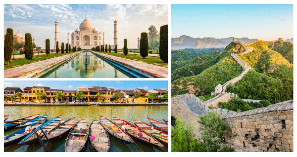 En Asie, vous découvrirez certains des sites les plus emblématiques au monde, témoins d’histoires fascinantes et de civilisations millénaires. En Inde, le majestueux Taj Mahal émerveille par son architecture et la poésie de son histoire. En Chine, la Grande Muraille serpente à travers montagnes et vallées, offrant des panoramas spectaculaires. Au Vietnam, la ville de Hoi An charme les voyageurs avec ses ruelles colorées, ses maisons anciennes et ses lanternes qui illuminent la ville à la tombée de la nuit.